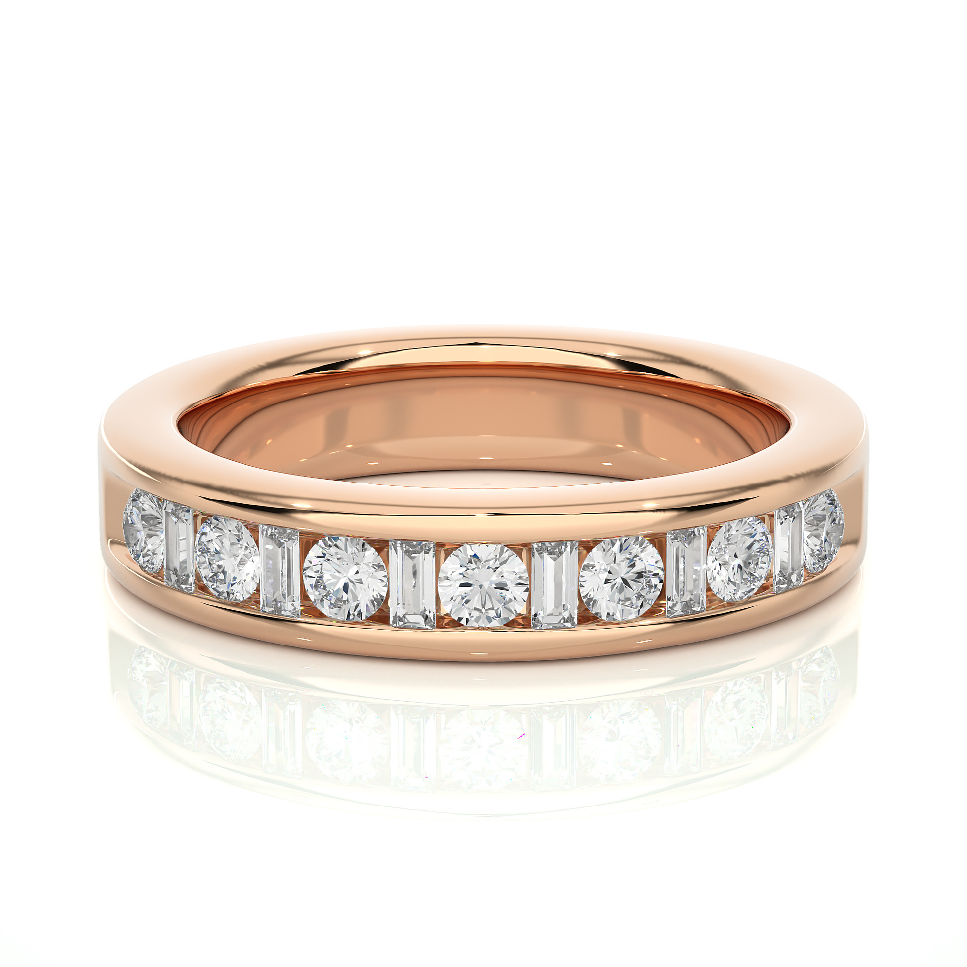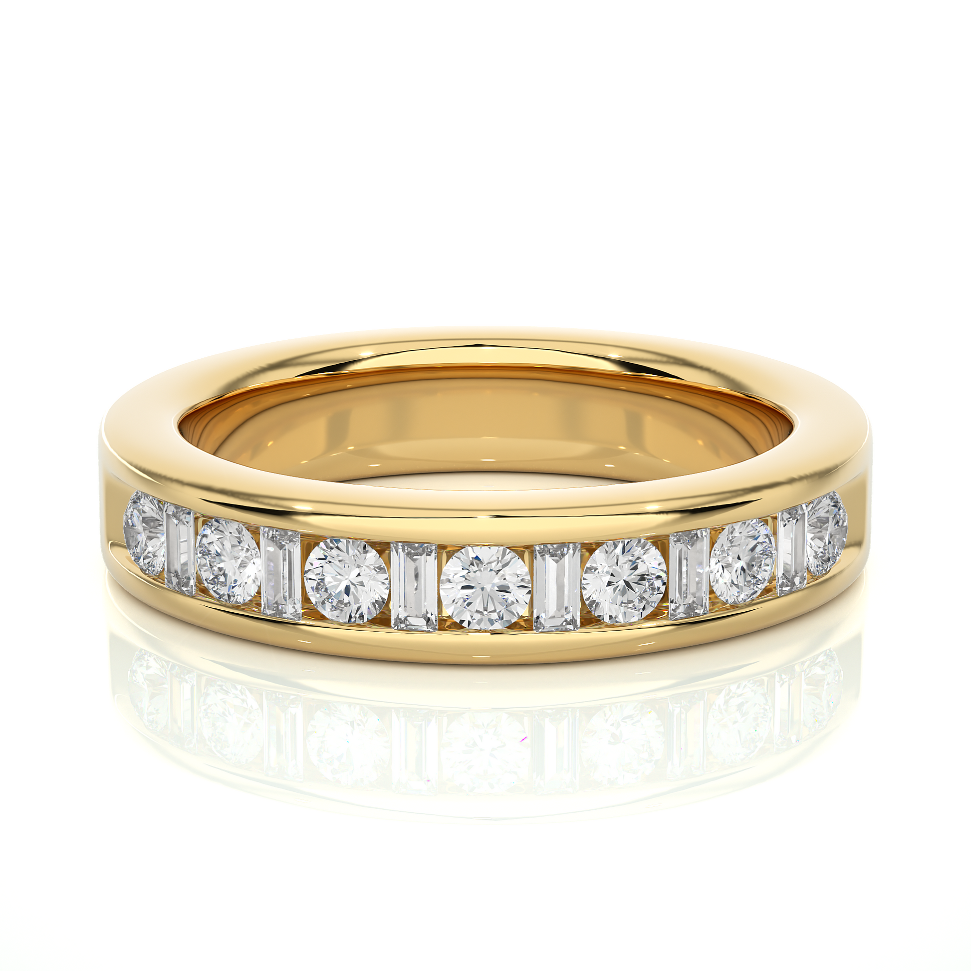 Baguette Round Diamond Moissanite Vermeil Wedding Band Ring