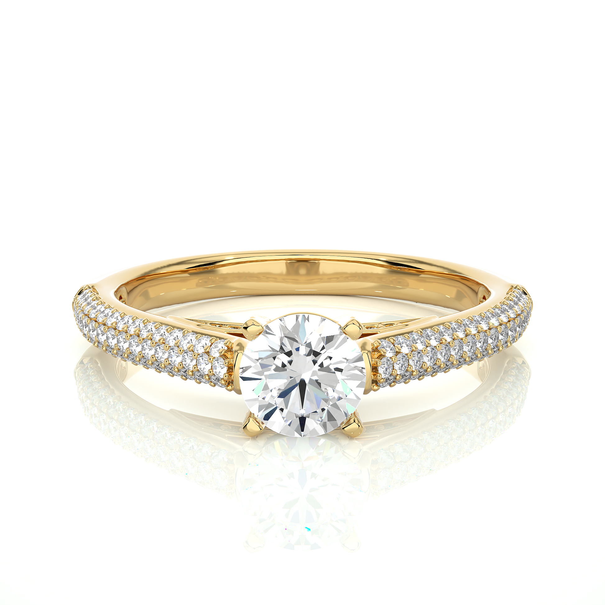 Elegant Solitaire Pave Lab Moissanite Diamond Vermeil Engagement Ring